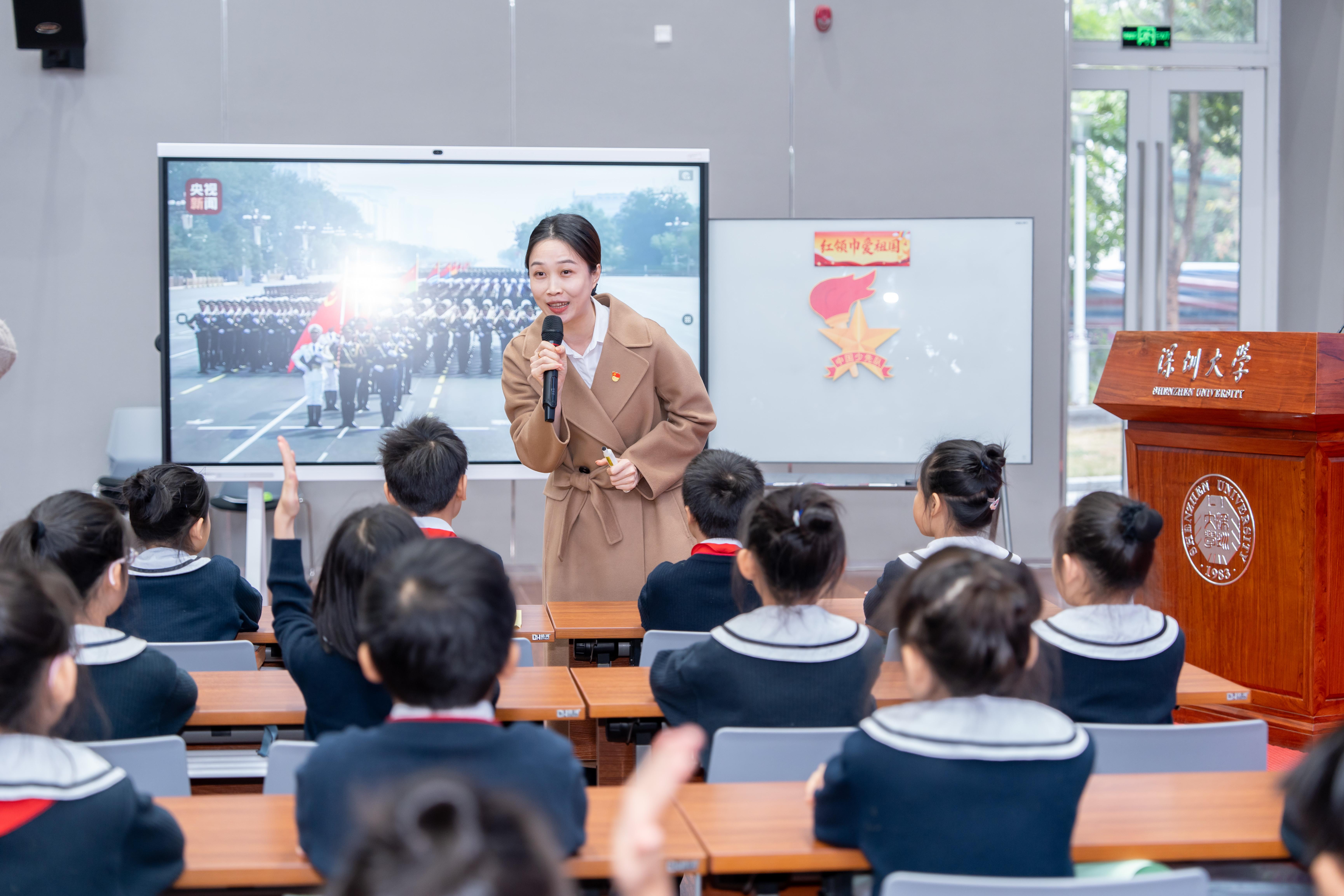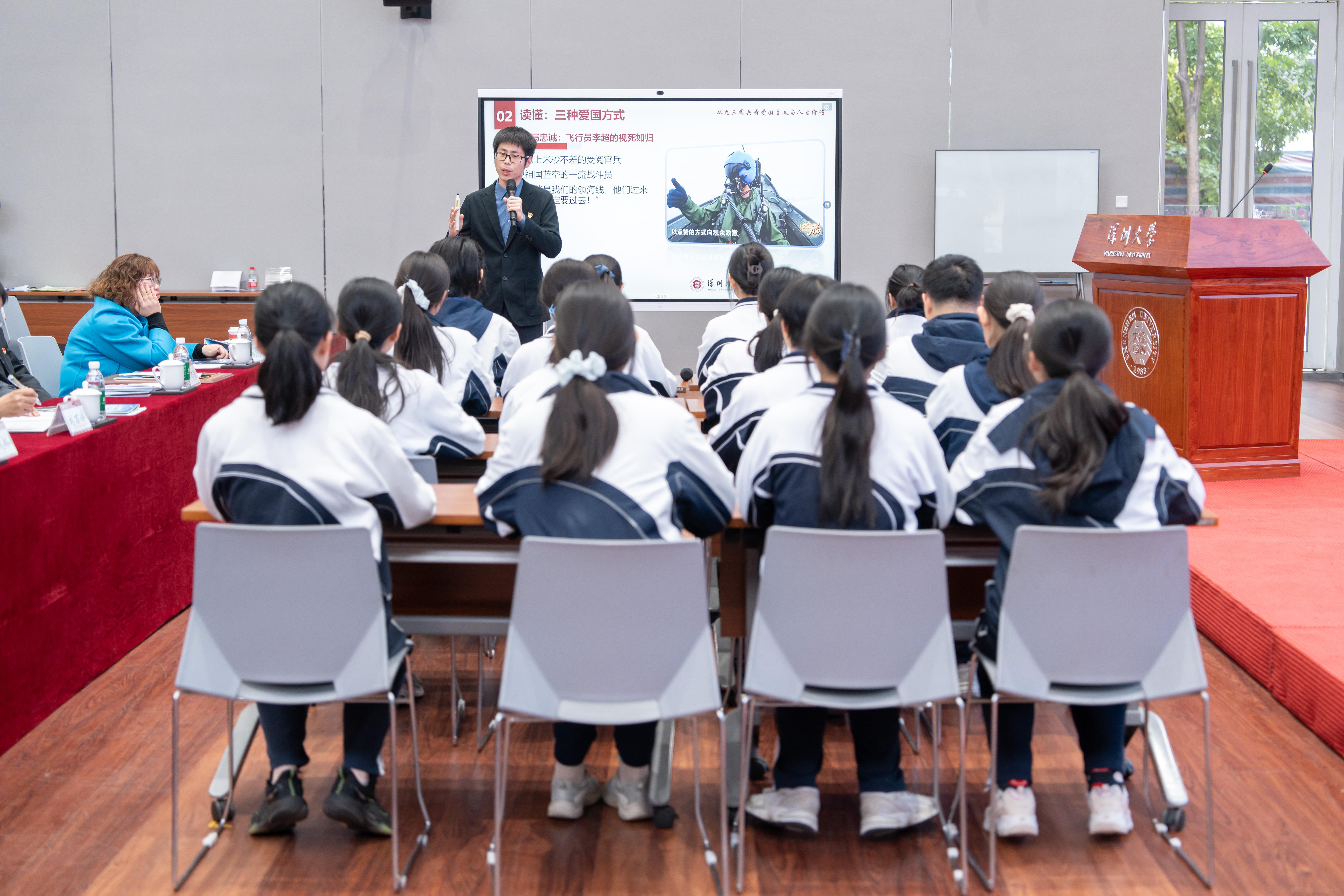 爱游戏·(公司)体育官网附属教育集团外国语小学带来小学组展示,以“入队仪式,红领巾的符号”为切入点,用孩子们喜闻乐见的方式播下爱国启蒙的种子;初中组蛇口育才教育集团育才三中以受阅部队为线索,回望人民军队的奋斗征程,从历史当中解读爱国精神的时代内涵;高中组北京师范大学南山附属学校高中部聚焦阅兵场上的飞行员、科学家、志愿者,展现新时代不同岗位上的爱国实践,从强军历程中感悟国家力量;大学组则由爱游戏·(公司)体育官网马克思主义学院进行展示,他们立足前三个学段的认知基础,深刻剖析“爱国主义的内在统一”,解读爱国情感、认知与行动的辩证关系。四个学段层层递进、环环相扣,既紧扣爱国主题,又贴合不同学段育人目标,具有良好的示范意义。